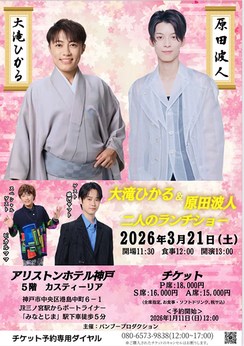 2026年3月21日(土)「大滝ひかる&原田波人 二人のランチショー」ゲスト出演決定!