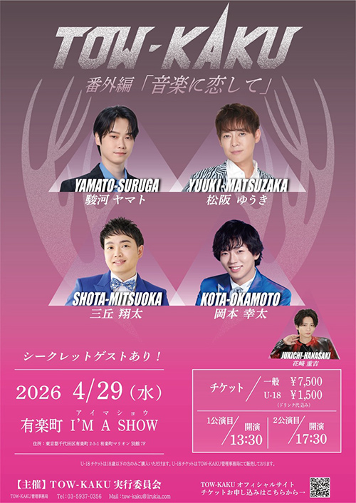 4/29(水・祝)『TOW-KAKU 番外編 「音楽に恋して」』チケット好評発売中!